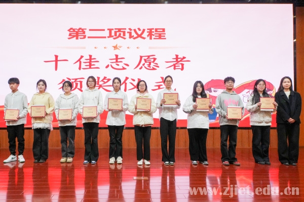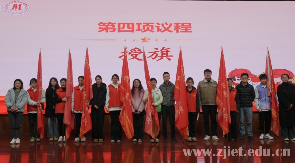 大会对学校2024年度志愿服务先进集体与十佳志愿者进行了表彰。商务智能学院作为优秀志愿服务项目代表进行了典型分享,国际教育学院、数字贸易学院等优秀志愿服务队代表进行了主题风采展示。会上,各学院团总支书记为学院志愿服务队进行授旗。现场还举行了志愿者宣誓仪式。