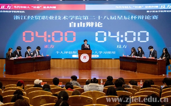 本届“星辰杯”辩论赛自3月16日启动以来,经过初赛、复赛等10场思辨舌战,来自数字贸易学院等4个学院的辩论队选手晋级总决赛。总决赛现场,围绕“‘逃离大城市’/‘逃回大城市’更是当代年轻人的好出路”与“当代青年人‘社恐’是真问题/假问题”两个青年关注热点展开智慧交锋。最终,数字贸易学院辩论队摘得桂冠,合作经济学院、创意设计学院辩论队分获亚军、季军。