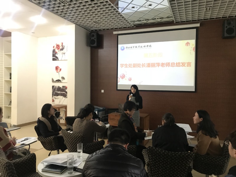 学生处副处长潘丽萍作总结发言。她指出,情商教育是我校“目标导航工程”的特色工作,通过构建“学校、系部和班级”三级活动载体、“课程、测试、体验活动”三种活动形式、“初级、中级、高级”三级递进模式实施,通过多年的实践,力求情商教育全覆盖。她表示,情商教育要贵在坚持、重在系统、赢在特色,希望在今后的工作中,更加注重专业性、实效度和影响力,有效提升学生的情商素养和幸福指数,为引导学生快乐学业、满意就业和努力创业奠定坚实的基础。
